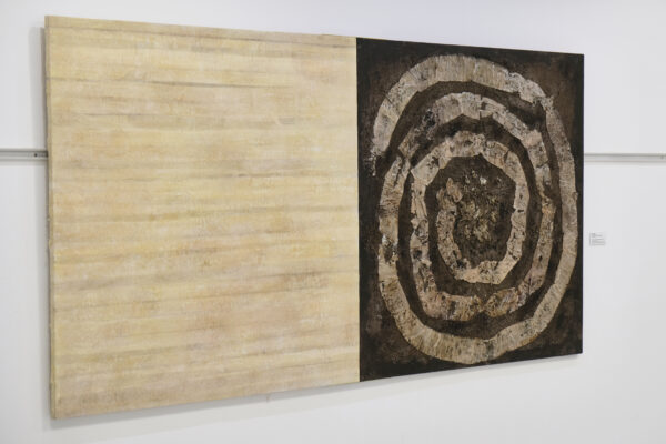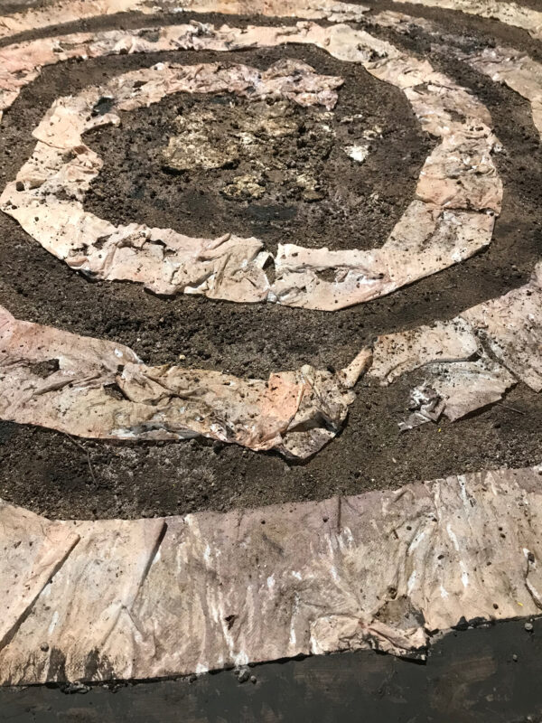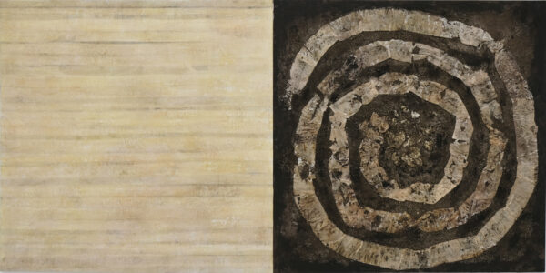 Acrylic, toiletpaper, earth on board, diptych 2 x 120 x 120 cm